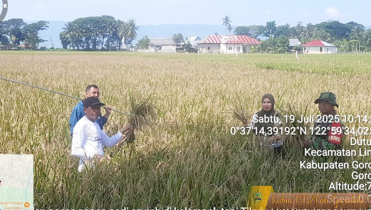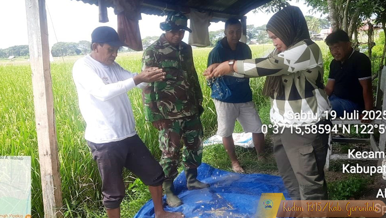 Babinsa Koramil 1315-02/Limboto Dampingi Kegiatan Ubinan Padi di Lahan 1,2 Hektar Kelurahan Dutulana