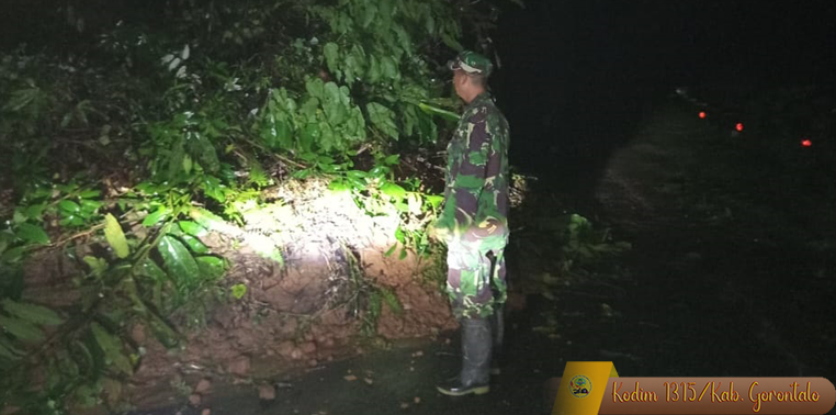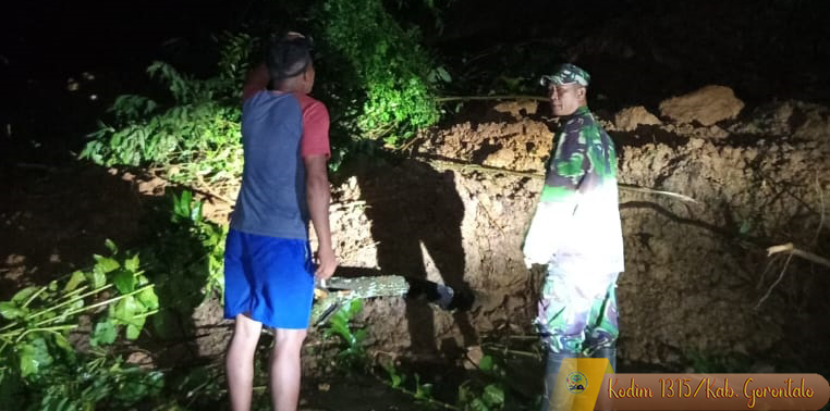 Babinsa Koramil 1315-05/Boliyohuto Tinjau Lokasi Tanah Longsor di Desa Huyula Kec. Mootilango