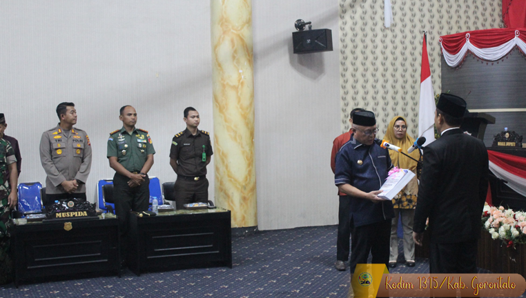 Kehadiran Letkol Arh. Roma Laksana Yudha, S.A.P., M. Sos., Dandim 1315/Kab. Gorontalo dalam Rapat Paripurna bersama jajaran Forkopimda menjadi wujud nyata komitmen TNI dalam mendukung jalannya roda pemerintahan dan pembangunan daerah. Kolaborasi lintas sektor ini diharapkan terus terjalin demi tercapainya kebijakan yang berpihak kepada kepentingan masyarakat luas. Rangkaian kegiatan Rapat Paripurna ditutup pada pukul 18.00 Wita dalam situasi yang aman, tertib, dan penuh semangat sinergi serta kebersamaan.