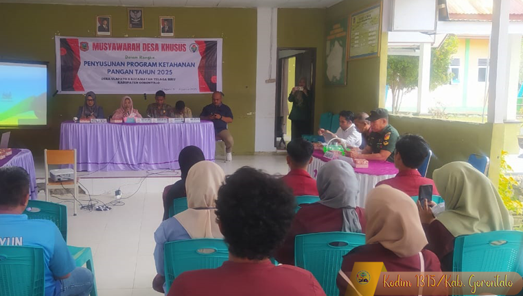 Telaga Biru, 07 Agustus 2025 – Di tengah hangatnya semangat kebersamaan desa, aula kantor Desa Ulapato B menjadi saksi pertemuan penting pagi itu. Tepat pukul 09.45 Wita, derap langkah warga dan perangkat desa berpadu dalam satu tujuan: menyusun fondasi ketahanan pangan untuk tahun 2025. Hadir dalam kegiatan Musyawarah Desa Khusus ini, Sertu Jalil, Babinsa Koramil 1315-01/Telaga, dengan penuh tanggung jawab turut mendampingi jalannya forum, memastikan kelancaran dan keamanan acara dari awal hingga akhir.