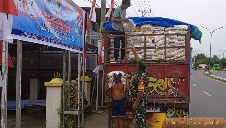 Tibawa, 08 Agustus 2025 — Matahari siang mulai condong ke barat ketika suasana Kantor Desa Isimu Raya dipenuhi kesibukan yang tak biasa. Tepat pukul 13.46 Wita, puluhan karung beras mulai diturunkan satu per satu dari kendaraan angkut. Di tengah semangat gotong royong para aparat desa, hadir sosok berseragam loreng yang turut membaur tanpa ragu: Serda Agus R, Babinsa Koramil 1315-04/Tibawa.