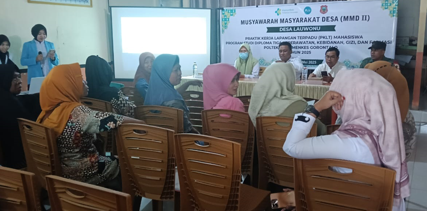 Dalam sambutannya, Camat Tilango Syamsul Qamar Mustafa menyampaikan apresiasi atas pelaksanaan MMD oleh mahasiswa PKLT Poltekkes Kemenkes Gorontalo. Ia berharap kegiatan ini dapat memberikan kontribusi nyata terhadap peningkatan derajat kesehatan masyarakat di Desa Lauwonu. Beliau juga menekankan pentingnya sinergi antara pemerintah, tenaga kesehatan, dan masyarakat dalam mewujudkan lingkungan desa yang sehat dan sejahtera.