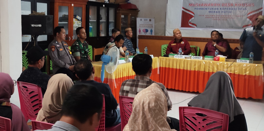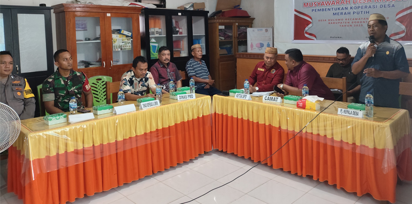 Telaga, 26 April 2025 - Bertempat di Aula Kantor Desa Dulomo, Kecamatan Tilango, Kabupaten Gorontalo, Serda Irfan Suryadi (Babinsa Koramil 1315-01/Telaga Biru) turut menghadiri pelaksanaan Musyawarah Desa Khusus dalam rangka pembentukan Koperasi Desa Merah Putih desa Dulomo Tahun 2025.