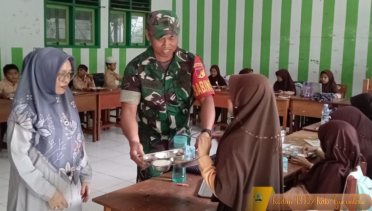 Telaga, 25 Juli 2025 – Pagi yang cerah di Kecamatan Telaga menjadi saksi kepedulian berbagai pihak terhadap masa depan generasi muda Indonesia. Serda Amar, Babinsa Koramil 1315-01/Telaga, turut hadir mendampingi kegiatan Makan Bergizi Gratis (MBG) bersama Arisanti Cheline Kukus, S. Kep.Ns., Kepala Dapur MBG Kecamatan Telaga. Kegiatan ini berlangsung serentak di sejumlah sekolah, yakni SMP Negeri 1 Telaga, SMP Negeri 2 Telaga, SD Negeri 3 Telaga, dan TK Dahlia, pada Jumat, 25 Juli 2025, mulai pukul 08.00 Wita.