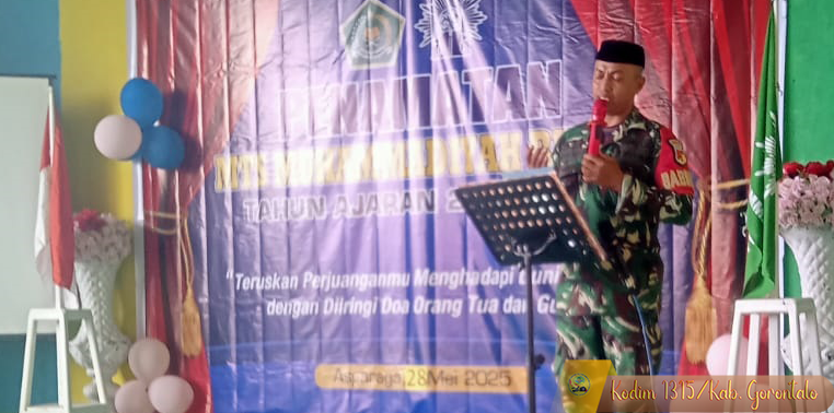 Bululi, 28 Mei 2024 - Serka Laode Kalawara, Babinsa Koramil 1315-05/Boliyohuto, menghadiri kegiatan Baca Doa dalam rangka Penamatan MTs. Muhammadiyah Bululi yang dirangkaikan dengan Pemberian Penghargaan kepada Siswa Lulusan Terbaik. Kegiatan berlangsung pada hari Rabu, 28 Mei 2024 pukul 09.30 Wita di MTs. Muhammadiyah Bululi, Desa Bululi, Kecamatan Asparaga, Kabupaten Gorontalo.