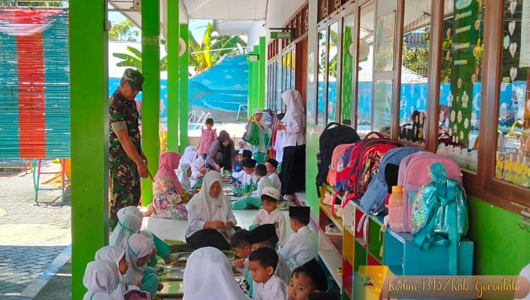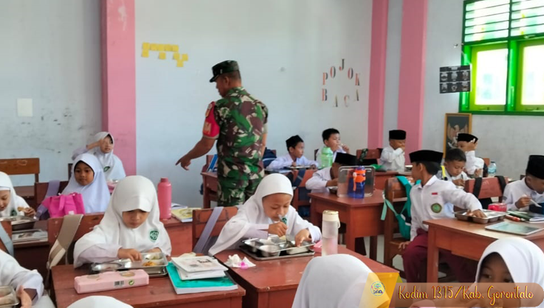 Telaga, 04 Agustus 2025 – Pagi yang cerah menjadi saksi kepedulian nyata negara terhadap generasi penerus bangsa. Sertu Jalil, Babinsa Koramil 1315-01/Telaga, dengan semangat pengabdian, melaksanakan kegiatan pendampingan program Makan Bergizi Gratis kepada para siswa di wilayah Kecamatan Telaga dan Telaga Jaya, Kabupaten Gorontalo.