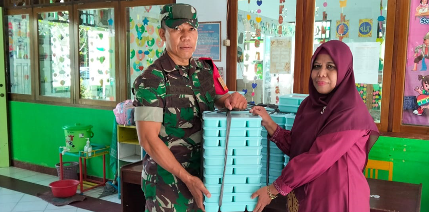 Sertu Jalil Dampingi Penyaluran Makanan Bergizi Gratis untuk 2.735 Siswa di Telaga Biru