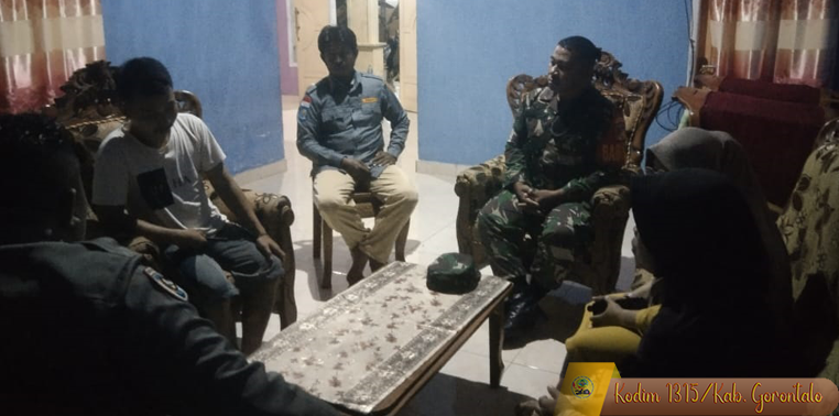 Telaga, 29 Juni 2025 – Sertu Jemris K. Yalani, Babinsa Koramil 1315-01/Telaga, menghadiri kegiatan mediasi antara Ibu Dasmin Lasoma (56), seorang ibu rumah tangga beragama Islam, dengan anaknya Ikal Mustafa (23), wiraswasta beragama Islam, yang berdomisili di Desa Tinelo, Kecamatan Telaga Biru, Kabupaten Gorontalo. Mediasi ini dilaksanakan pada Minggu, 29 Juni 2025, pukul 21.25 Wita, bertempat di Desa Tinelo.