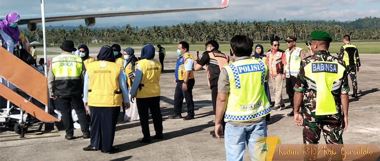 Dimulai dari informasi kedatangan pesawat Lion Air JT-3792 yang membawa jamaah Kloter 32, petugas gabungan mulai bersiaga sejak pagi hari. Setibanya pesawat di Bandara Djalaluddin, personel keamanan langsung bergerak melakukan pengamanan dan pengaturan proses turun-naiknya jamaah ke kendaraan. Setelah itu, rombongan jamaah haji diberangkatkan menuju asrama haji dengan pengawalan ketat.