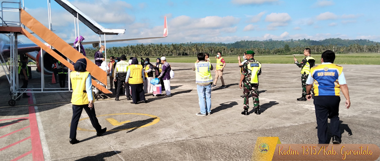 Dengan penuh rasa tanggung jawab, Babinsa Koramil 1315/Kabupaten Gorontalo telah turut serta dalam mendampingi penyambutan 182 Jamaah Haji asal Kota Gorontalo Kloter 32, yang tiba dengan pesawat Lion Air No. PN. JT-3792 di Bandara Djalaluddin Gorontalo. Semoga kebersamaan dan pengabdian ini terus terjalin dalam membangun keamanan dan kesejahteraan masyarakat Gorontalo.