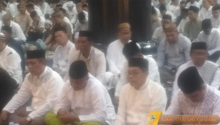 Di antara tamu undangan, hadir Letda Inf Liwang, S.H., yang mewakili Dandim 1315/Kabupaten Gorontalo. Kehadirannya menjadi bagian dari komitmen TNI, khususnya Kodim 1315, untuk selalu bersinergi dengan seluruh elemen bangsa dalam memperkuat ikatan kebersamaan, membangun persatuan, dan meneguhkan semangat nasionalisme melalui nilai-nilai keagamaan. Sebagaimana tugas pokoknya, Kodim 1315/Kabupaten Gorontalo bertanggung jawab menyelenggarakan pelatihan kemampuan, penguatan kekuatan, dan pembinaan teritorial guna menyiapkan wilayah pertahanan di darat serta menjaga keamanan wilayahnya.