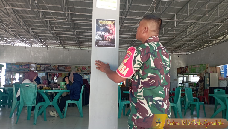 Dipimpin langsung oleh para Babinsa Koramil 1315-01/Telaga, kegiatan dimulai dari lingkungan Kampus UMGO, di mana titik-titik strategis seperti papan informasi, dinding kelas, dan area umum menjadi lokasi penempelan stiker. Tidak berhenti di sana, Babinsa kemudian melanjutkan ke SMP Widyakrama, menyambut para siswa yang baru saja menyelesaikan kegiatan belajar. Dengan ramah dan bersahabat, Babinsa juga menyempatkan berdialog ringan, menyampaikan makna dari stiker “Believe” sebuah pesan sederhana namun mendalam untuk percaya pada diri sendiri, pada bangsa, dan masa depan Indonesia.