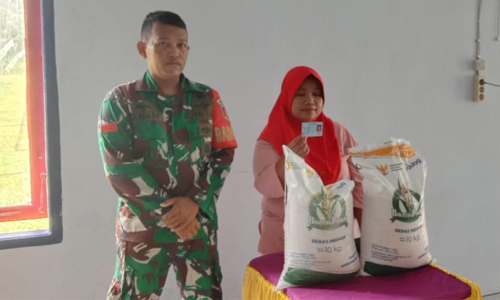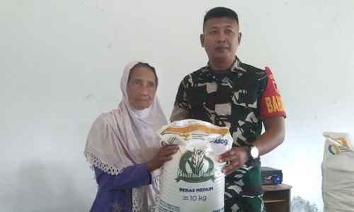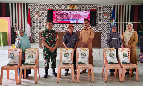 Sentuhan Tulus Babinsa Dunggala Saat Salurkan Beras Bulog ke Masyarakat