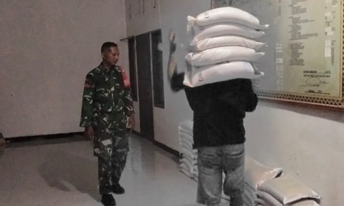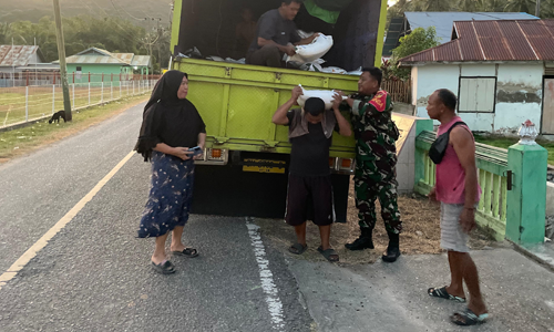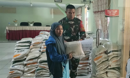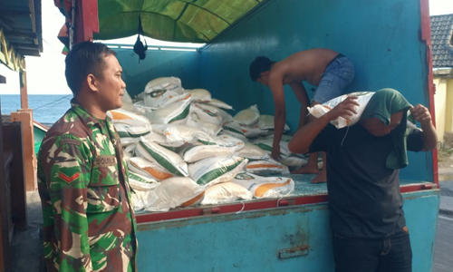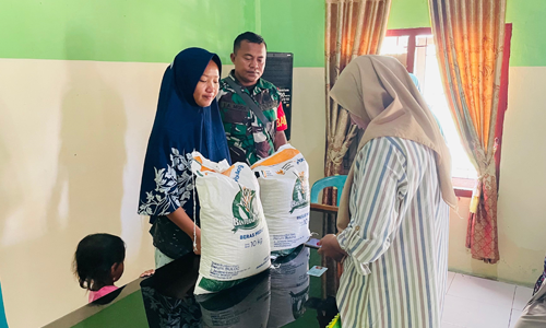 Wujud TNI Peduli, Sertu Sucipto Dampingi Penyaluran Beras di Luluo