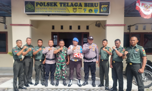 Sinergitas TNI-Polri, Koramil 1315-01/Telaga Ucapkan Selamat HUT Bhayangkara ke-79