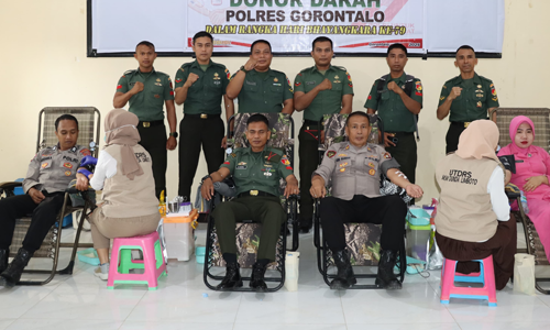 Sinergi TNI-Polri, Kodim 1315/Kab. Gorontalo Ikuti Donor Darah HUT Bhayangkara Ke-79