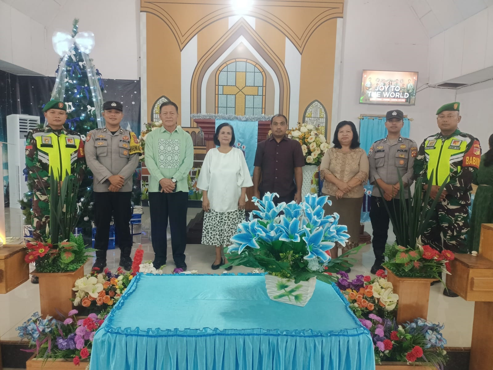 Gorontalo, 25 Desember 2025 – Personel Koramil 1315-01/Telaga bergerak sejak pagi melaksanakan pengamanan perayaan Ibadah Natal di Gereja Torsina Kompi B 713/ST, Desa Tuladenggi, Kecamatan Telaga Biru, Kabupaten . . . 0