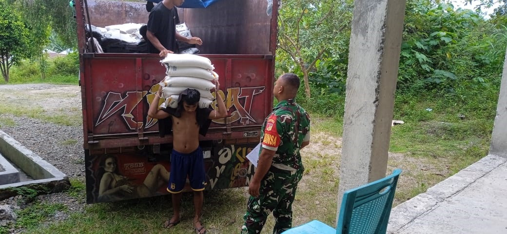 Babinsa Koramil 1315-04 Tibawa Dampingi Pendistribusian Bantuan Beras dan Minyak dari Pemprov Gorontalo