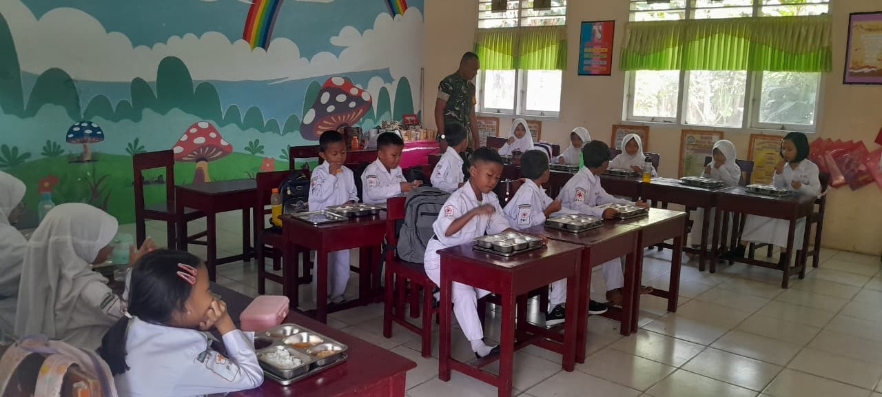 Babinsa Koramil 1315-04 Tibawa Melaksanakan Kegiatan Pendampingan Makan Bergizi Gratis Di Kecamatan Tibawa