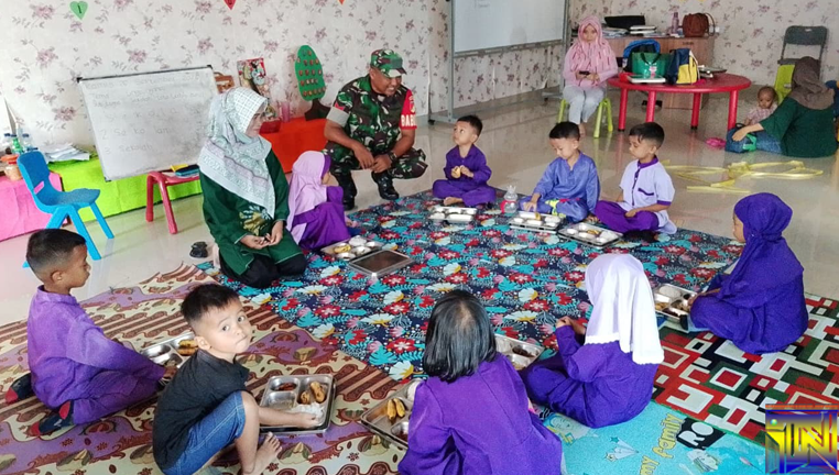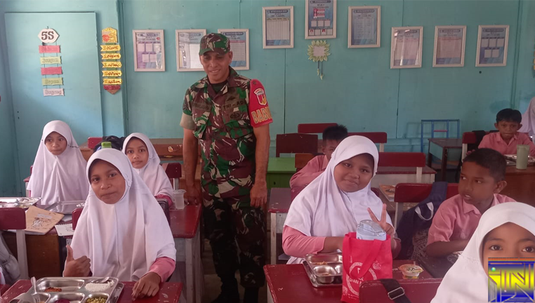 Babinsa Telaga Biru Dampingi Distribusi Makan Bergizi Gratis Bagi 3.096 Siswa
